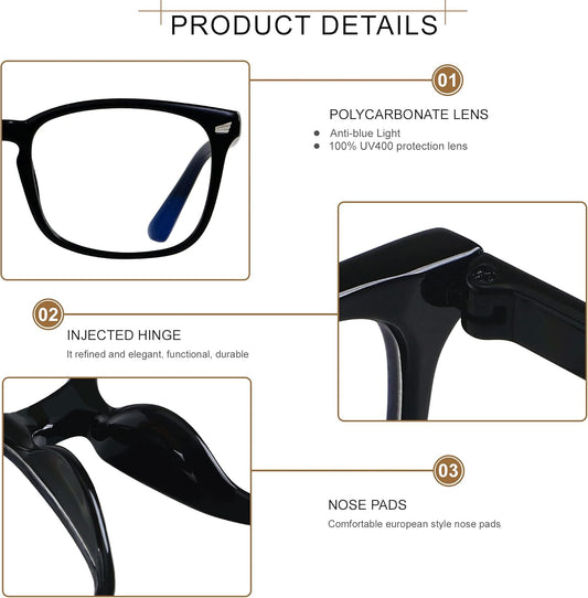 Blue Light Glasses for Women Men Computer Blocking Clear Bluelight Blocker 2 Pack Nerd anti Eye Strain Black Crystal